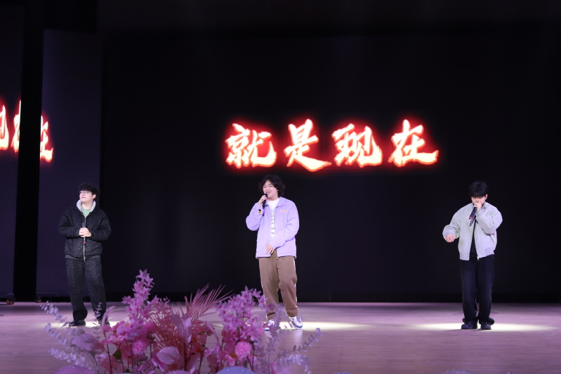 在分数统计环节,刘奕衫、王轶凡、王周孜麒三位同学带来表演曲目《就是现在》,现场氛围再次高涨。随后,主持人公布比赛结果,评委依次为获奖同学颁奖。