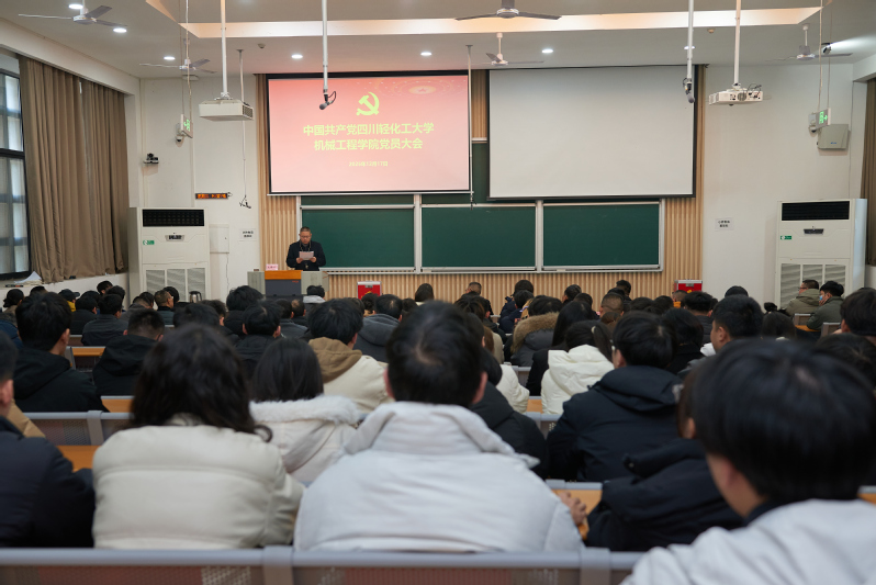 2025年12月17日,中共四川轻化工大学机械工程学院党员大会在宜宾校区A3-105教室隆重召开。换届选举督导组成员孙山同志、宋丽萍同志到会指导,大会由廖映华同志主持。