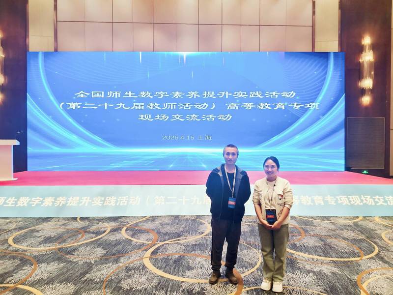 2026年4月14—16日,全国师生数字素养提升实践活动(第二十九届教师活动)高等教育专项现场交流活动在上海举行,全国百余所高校代表、虚拟仿真教学领域专家及教育科技企业代表共400余人参加了本次活动,活动由教育部教育技术与资源发展中心(中央电化教育馆)主办。我院实验中心教师杨睿、刘高君参加了此次交流活动。